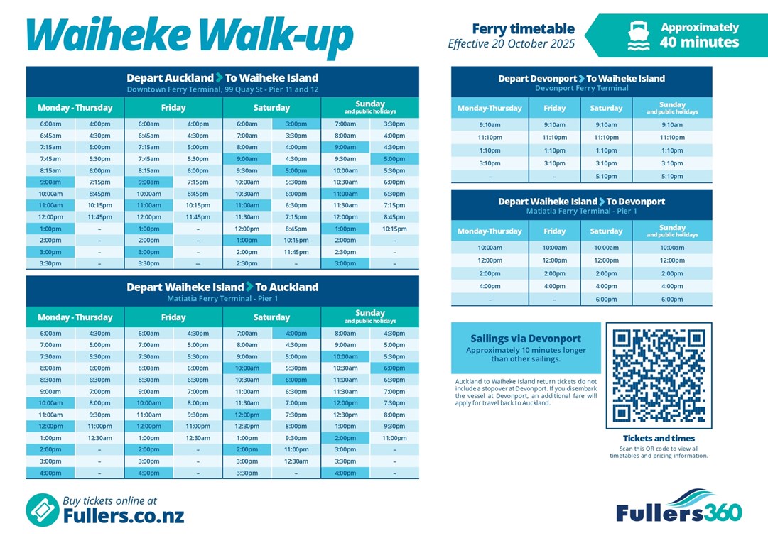 From Monday 20 October 2025, Fullers360 is pleased to be once again making the transition to our summer timetable for Waiheke Island, and to be reinstating our Waiheke Reserve Service.